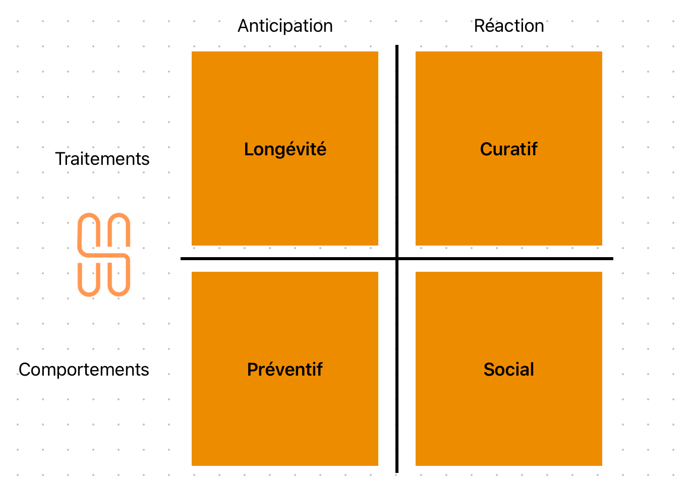 Pillier préventif, très à la mode, mais peu doté, va s’intéresser aux offres de produits et services qui peuvent anticiper, ralentir et même éviter les troubles de santé dont la prévalence augmente avec l’âge.