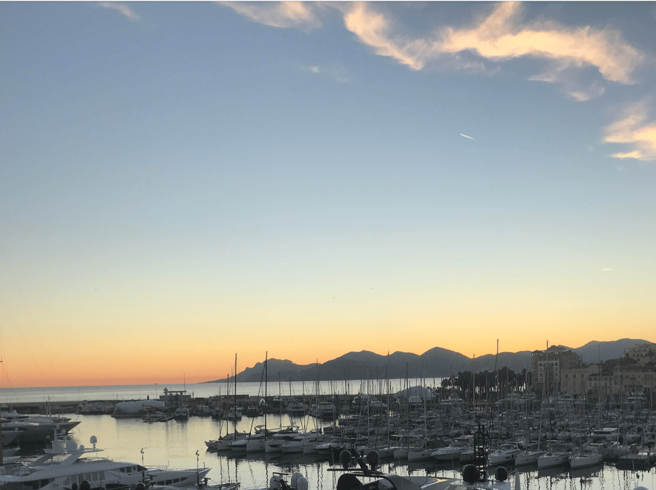 Avec Céline, j'ai assisté à un coucher de soleil magique sur la baie de Cannes depuis la terrasse du palais des festivals. On a parlé de son année, de son développement et de ses perspectives.