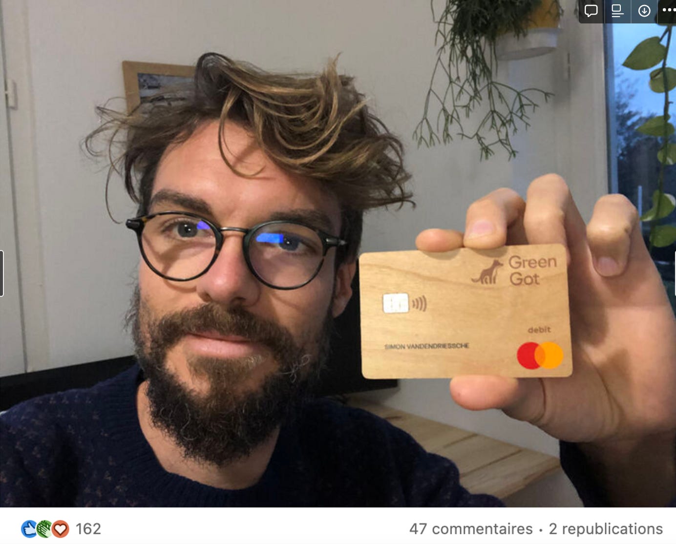 Ce nouveau client poste fièrement sur LinkedIn un selfie avec sa carte en bois. Dans les 10 Mn qui suivent, il reçoit les félicitations de chaque membre de l’équipe Green Got, puis de tous les clients qui saluent l’arrivée d’un nouveau membre dans la communauté.