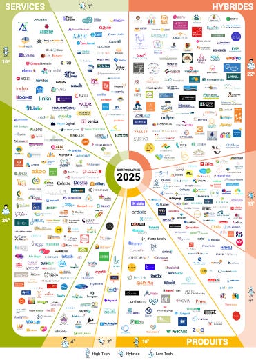 La cartographie constitue la colonne vertébrale du livre blanc que nous venons de publier avec la filière Silver économie. Cette année, j'ai créé une matrice qui catégorise les acteurs selon le niveau de technologie et la nature de l'offre.