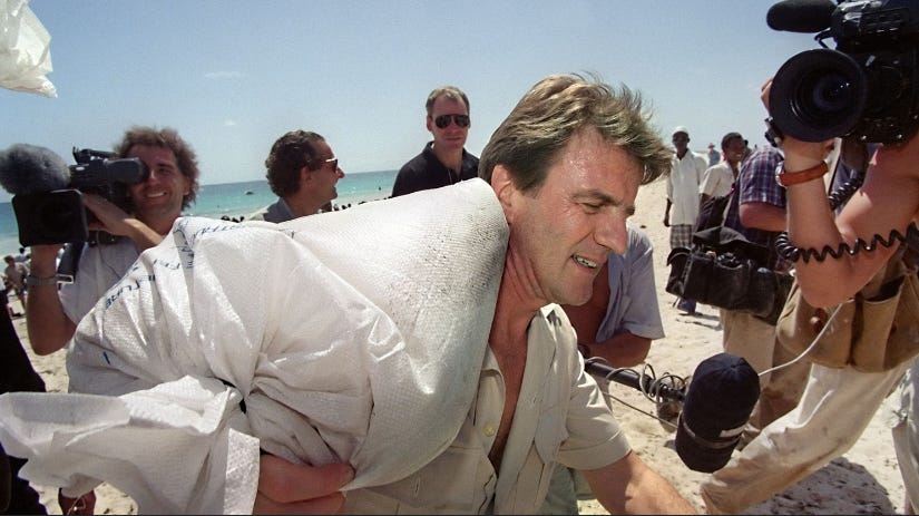 En 1992, la Somalie est en proie à une terrible guerre civile. Les populations civiles souffrent et très vite, la famine s'installe. Sous l'impulsion du ministre de la Santé de l'époque, Bernard Kouchner, une vaste opération de solidarité se met en place. Les écoliers français sont invités à venir à l'école avec des paquets de riz pour qu'ils soient envoyés en Somalie. L'opération est compliquée, mais des tonnes de riz sont finalement acheminées par bateau vers le pays d'Afrique. Bernard Kouchner, qui a compris la force des images, décide alors de se rendre sur les plages de Mogadiscio pour participer lui-même au déchargement des bateaux et apporter le riz aux populations affamées.