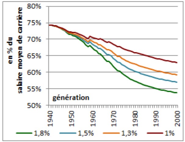 Le taux de remplacement correspond au pourcentage de votre salaire d’actif auquel vous pourrez prétendre une fois retraité. Et malheureusement, il dévisse depuis des années à cause de la transition démographique : moins d’actifs, plus de retraités, des retraites plus longues.